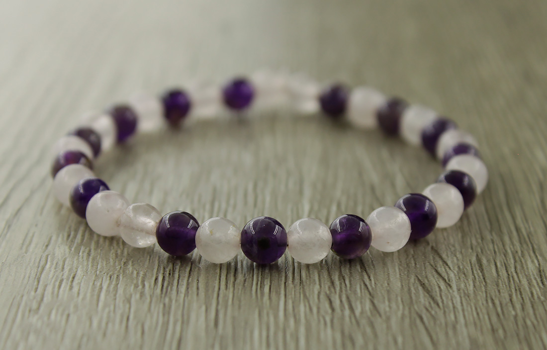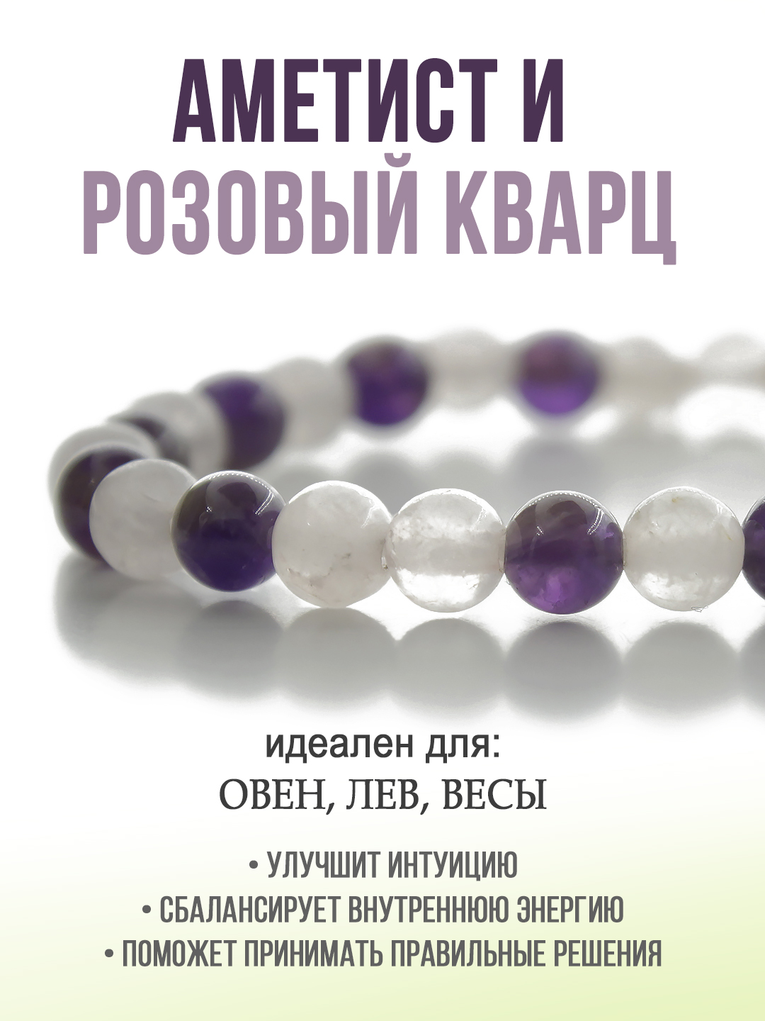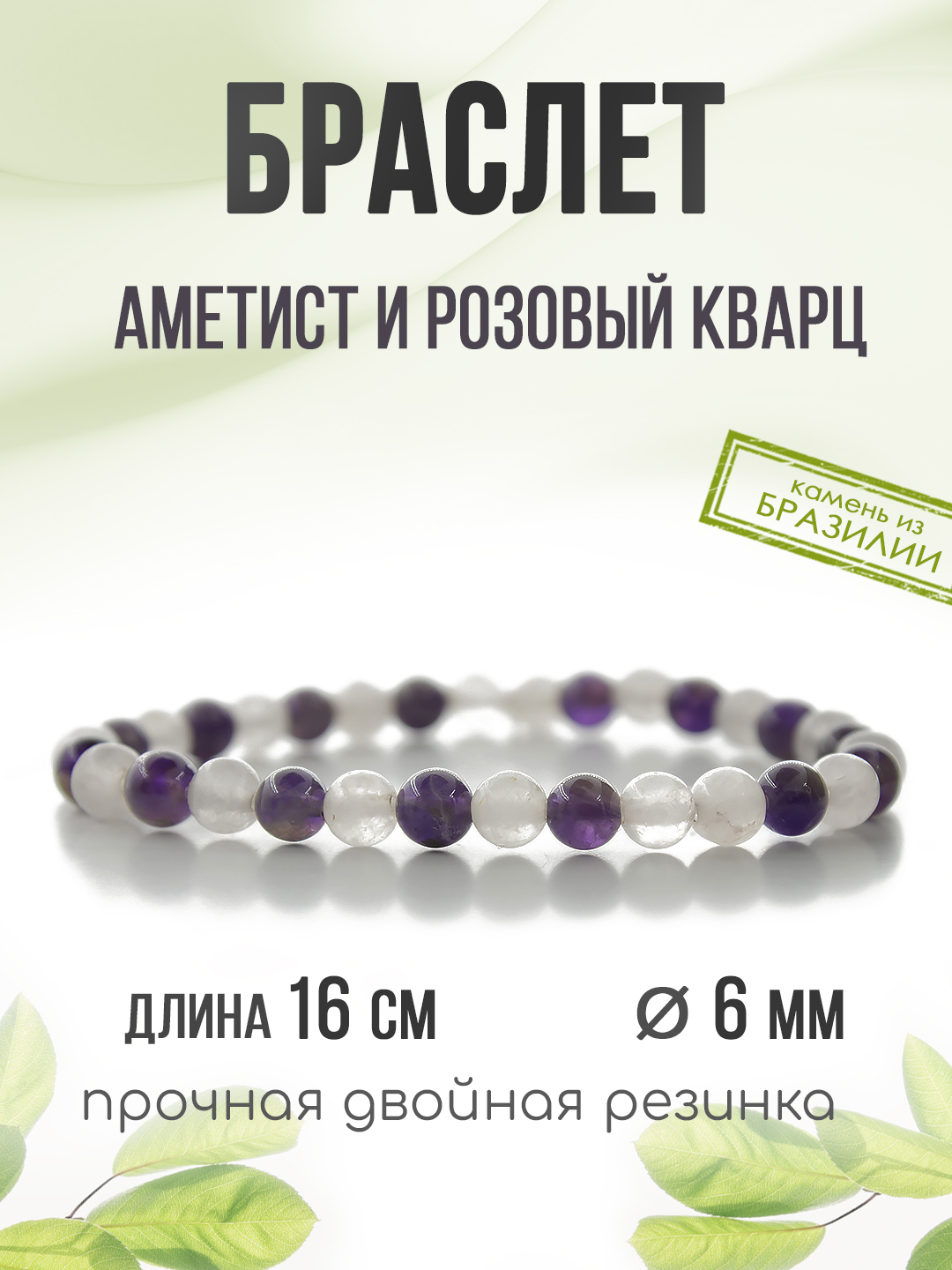 Этот браслет сделан из шариков натурального аметиста и розового кварца. Браслет на резинке. Диаметр шарика 6мм. Длина 18см.