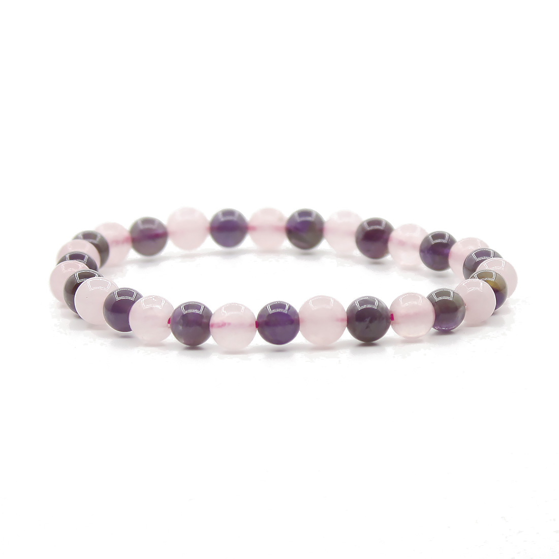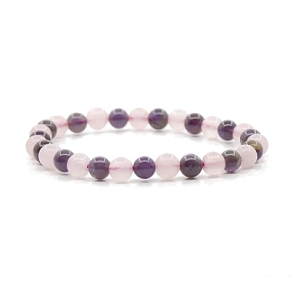 Браслет "Классика" 6мм розовый кварц и аметист 16см