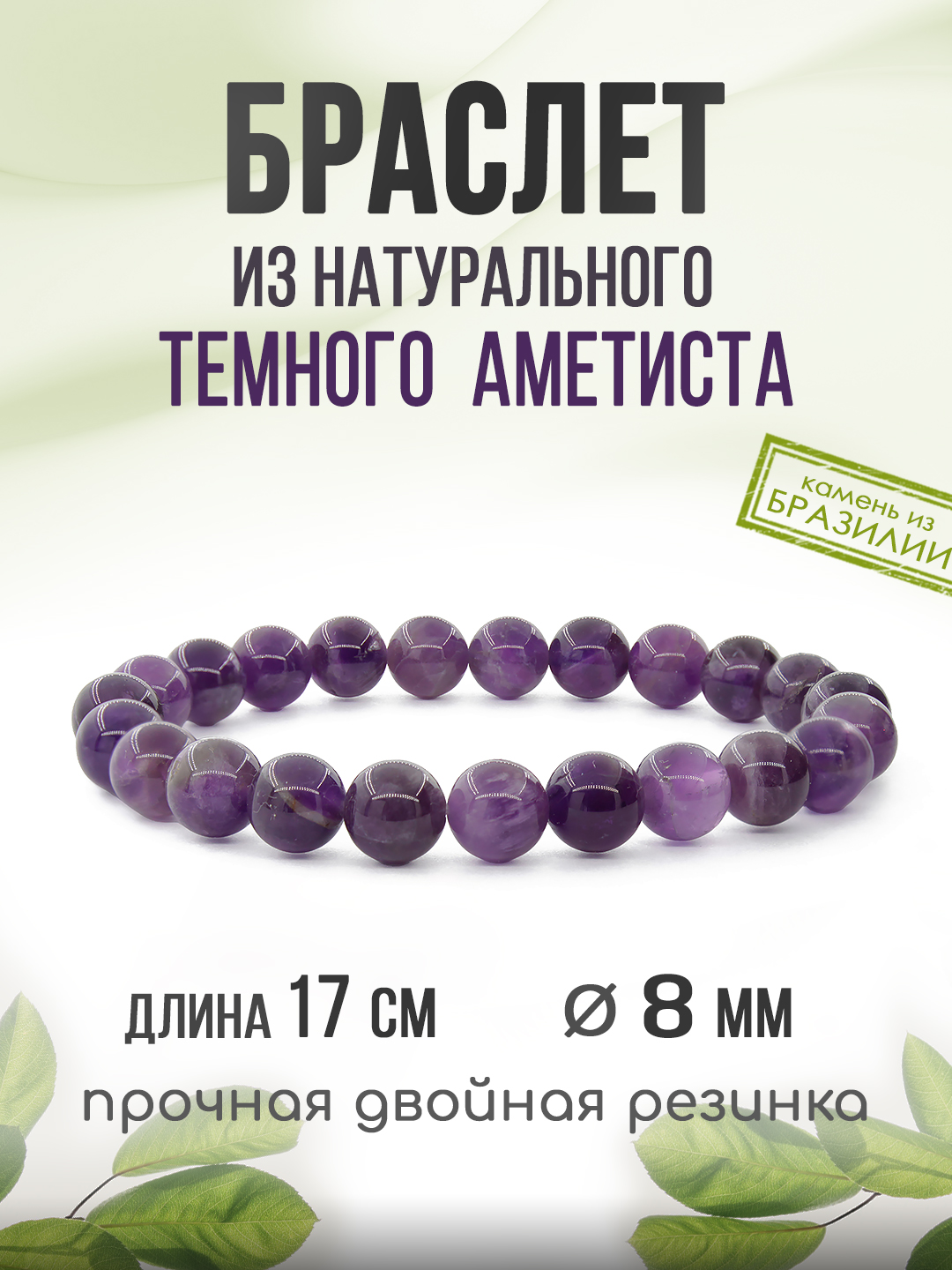 Аметист (Бразилия) 8мм, браслет "Классика" длиной 17см