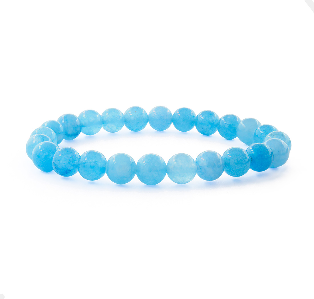 Браслет из кварца голубого оттенка на резинке. Браслет на резинке. Диаметр бусин 8мм. Длина 17см.