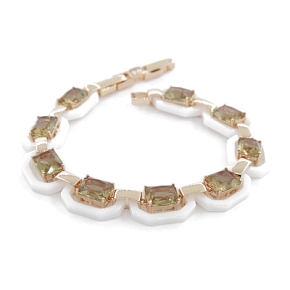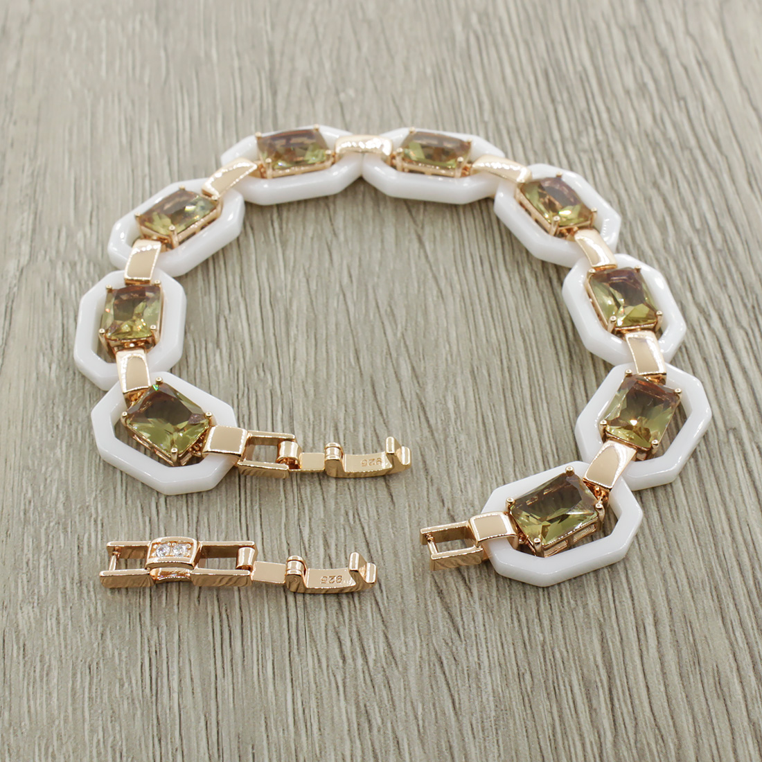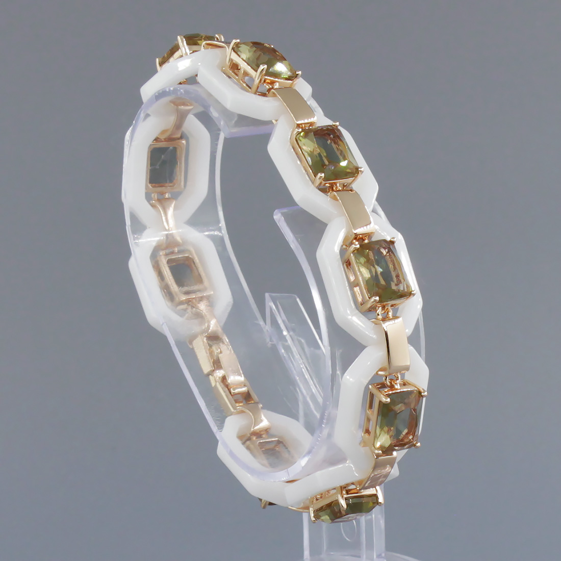 Браслет "Октагон" из белой керамики с Султанитом, покрытие под золото, длина 18см