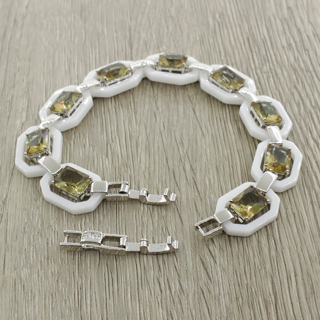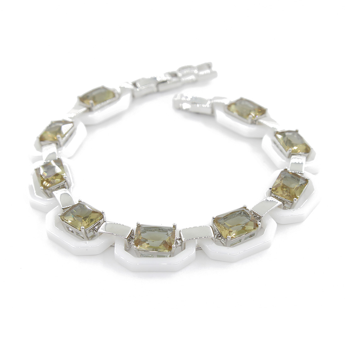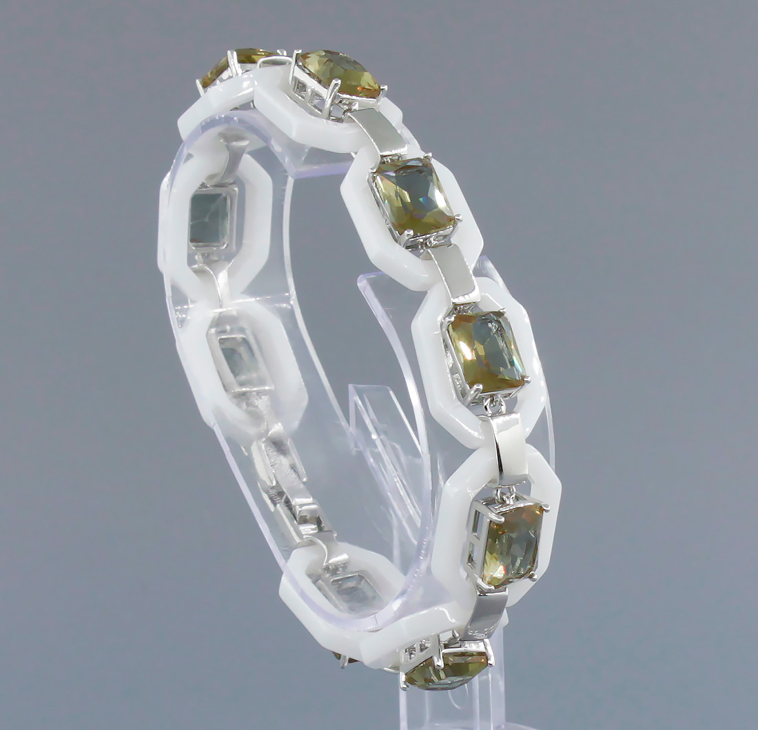 Браслет "Октагон" из белой керамики с Султанитом, покрытие родий, длина 18см
